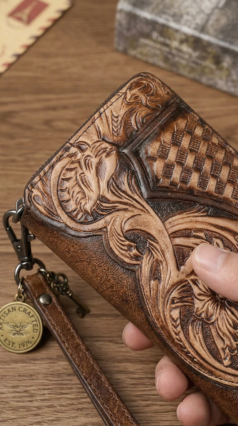 Designed with beautiful western-style tooling and detailed craftsmanship, these premium wallets protect your money, and other essentials adding a timeless, rustic look. Durable, elegant, and made to be used every day.